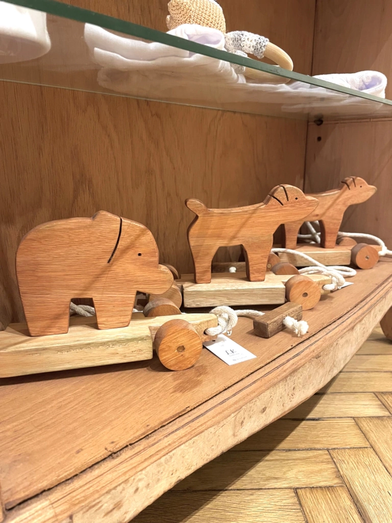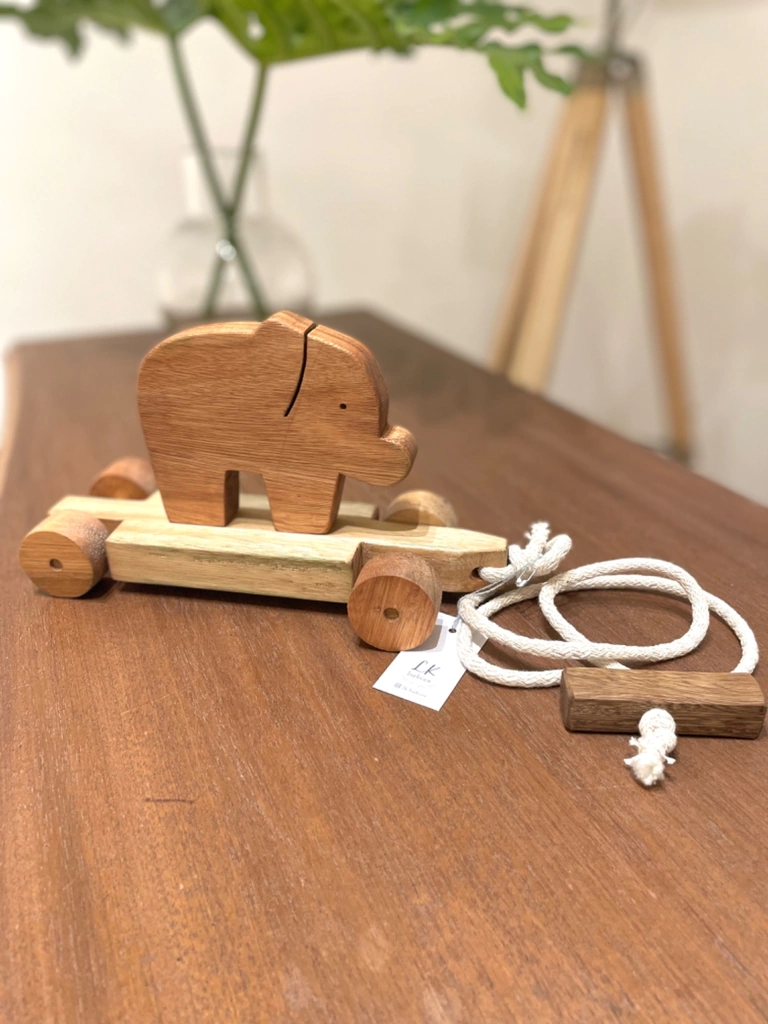 Animalito de madera con correa y ruedas para levarlo de paseo