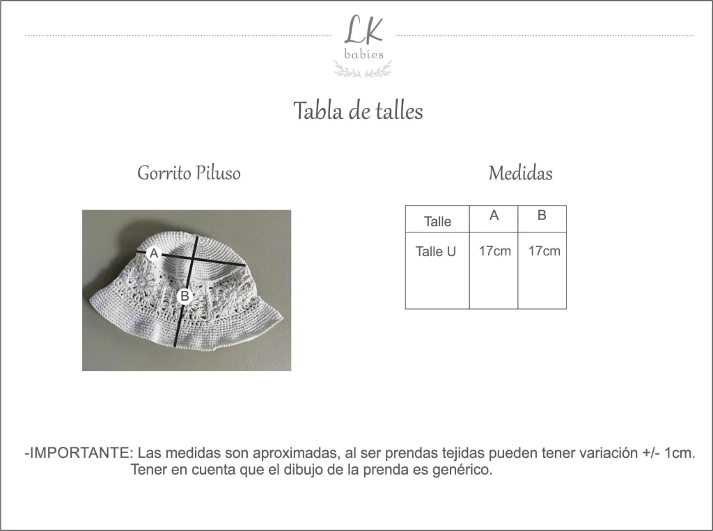 Gorrito piluso tejido al crochét en hilo 100 % algodon, muy canchero y delicado para completar todos los looks.
